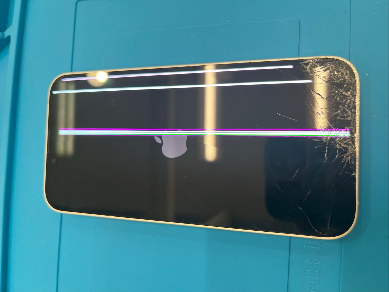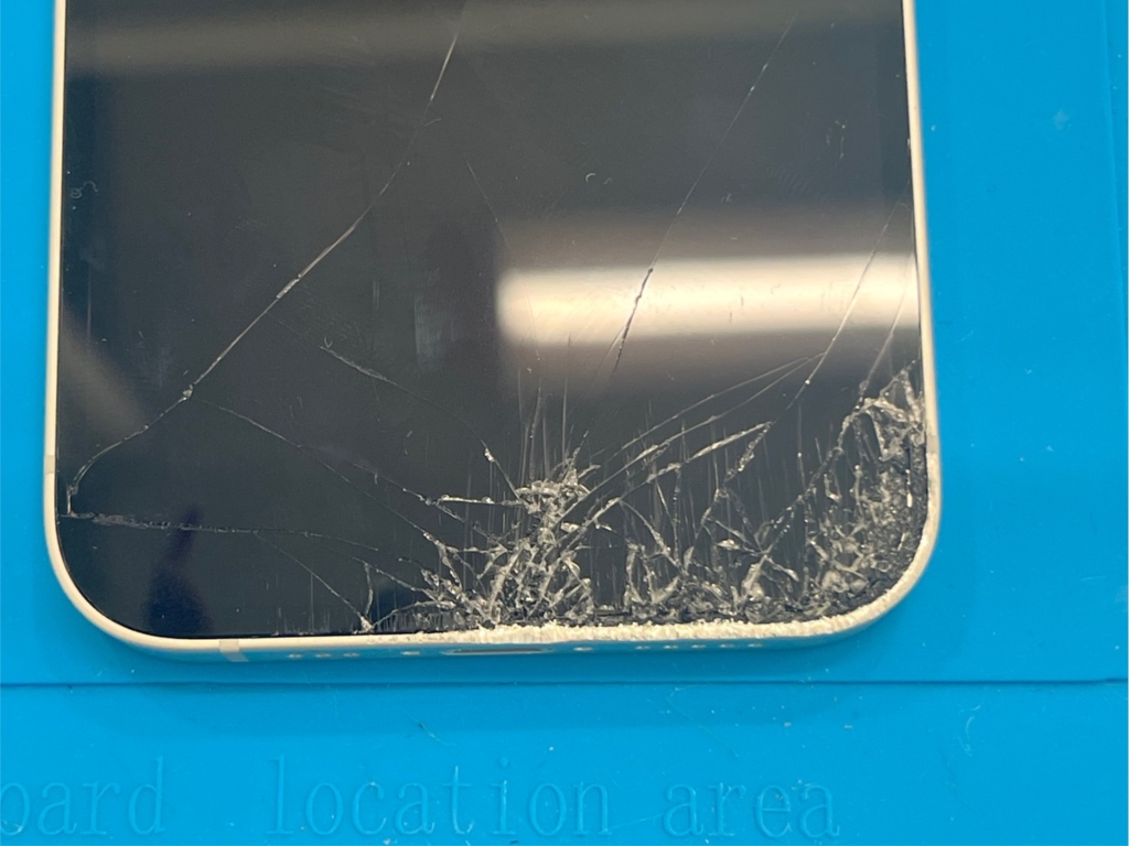 落として自転車に轢かれたと持ち込まれた最新機種のiPhone16e。