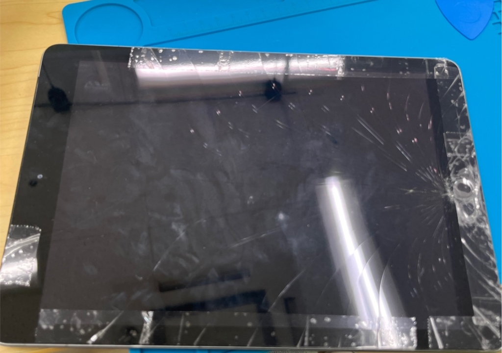こんにちはイカツイ店員です。 頑張って更新しよう。 今回は滋賀県大津市のiPad6です。 ホームボタンから蜘蛛の巣状に割れたiPad6をお持ち込みされました。見ての通りホームボタン周りの画面が粉々でほとんどない状態。一応機能しているそうなのですが押し... -