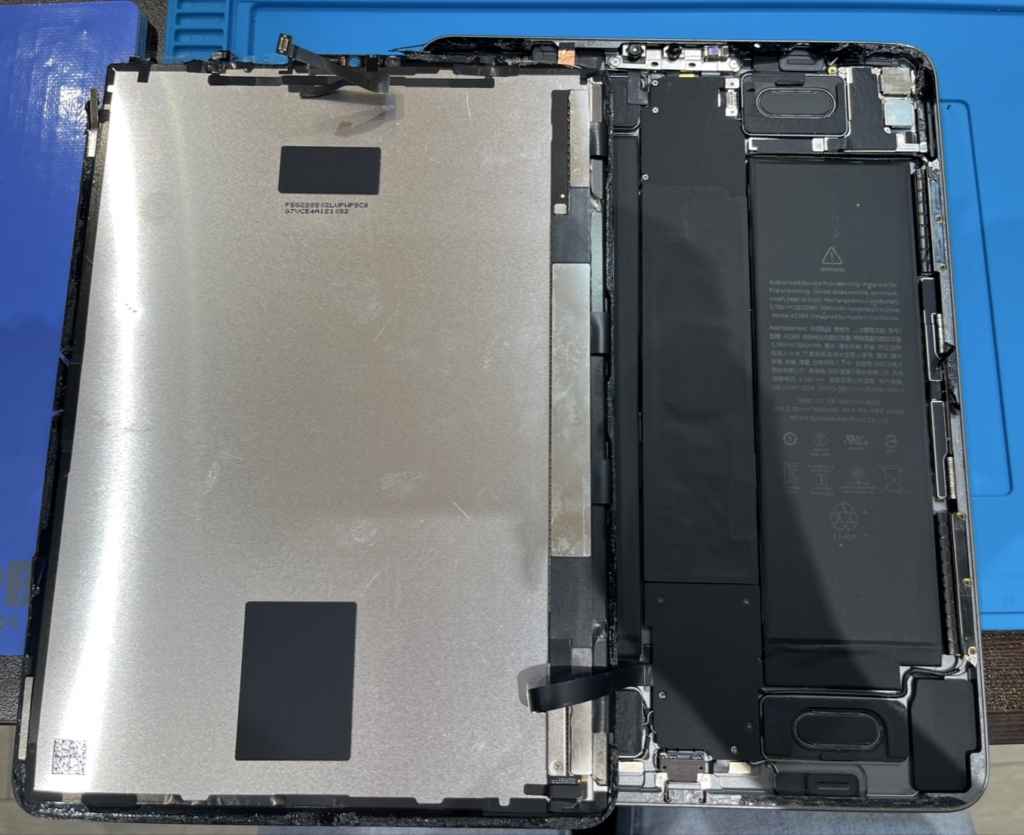 こんにちはイカツイ店員です。 頑張って更新しよう。 今回は滋賀県草津市のiPadPro第3世代です。 右上が集中的に破損しており、穴が開いてる状態で持ち込まれました。残念ながらFaceIDも使用不可になってました。同意書説明をし、作業開始。 iPadPro11イン...
