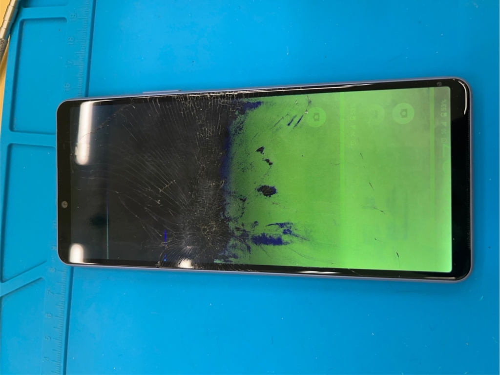 こんにちはイカツイ店員です。 頑張って更新しよう。 今回は滋賀県栗東市のXperia 10 Ⅲです。 派手に落としてしまってこうなったと持ち込まれました。上半分が完全にブラックアウト、下半分は緑色で画面もまともに映らない状態でした 注意点と同意書説明を... -