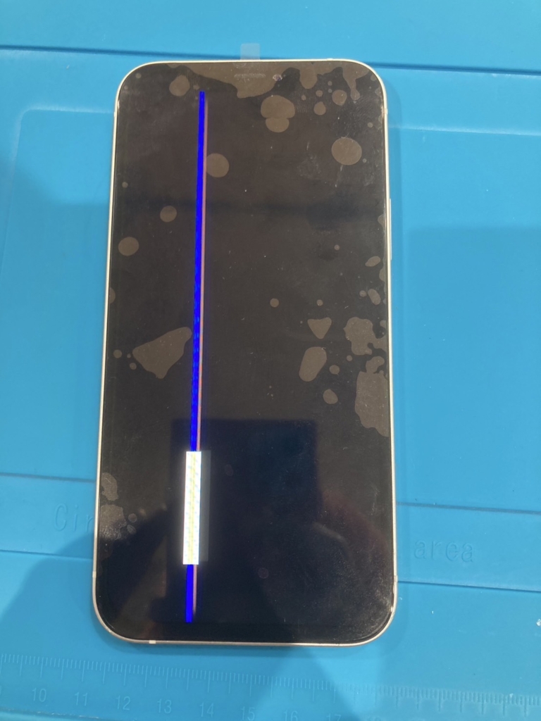 こんにちはイカツイ店員です。 頑張って更新しよう。 今回は滋賀県栗東市のiPhone12です。 落としてしまいこの状態になったとのこと。 落とした後すぐにご連絡いただき、ご予約していただきました。 破損した液晶でたびたび見られる黒に縦の一本線。 線が... -