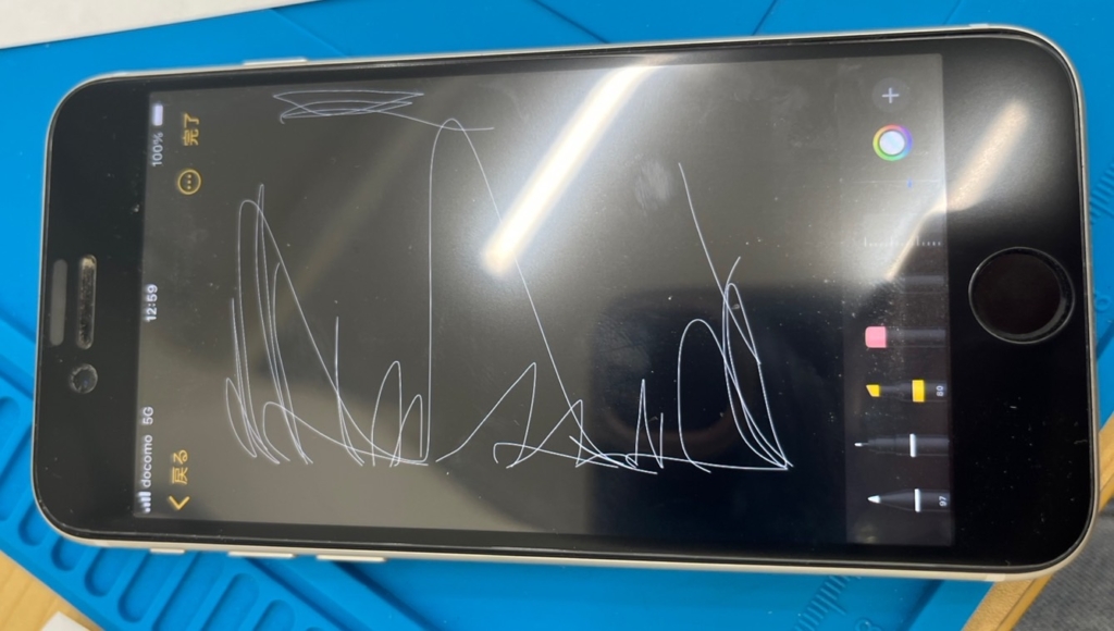 こんにちはイカツイ店員です。 頑張って更新しよう。 今回は滋賀県栗東市のiPhoneSE3です。 画像を見てもわかるように左端1㎝ほどタッチがきかないと持ち込まれました。SE2とSE3でよく見かける症状ですね。右端に起こる場合もあります。タッチがきかないの... -