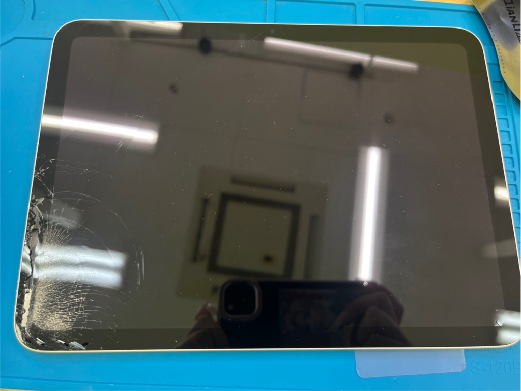 こんにちはイカツイ店員です。 頑張って更新しよう。 今回は滋賀県守山市のiPad10です。 磁気でくっつくケースを利用していたが磁気の弱まりによって落下して破損したとのこと。左上側が穴空いている状態で割れたガラスが中に入り込んでいて揺らすとシャカ... -