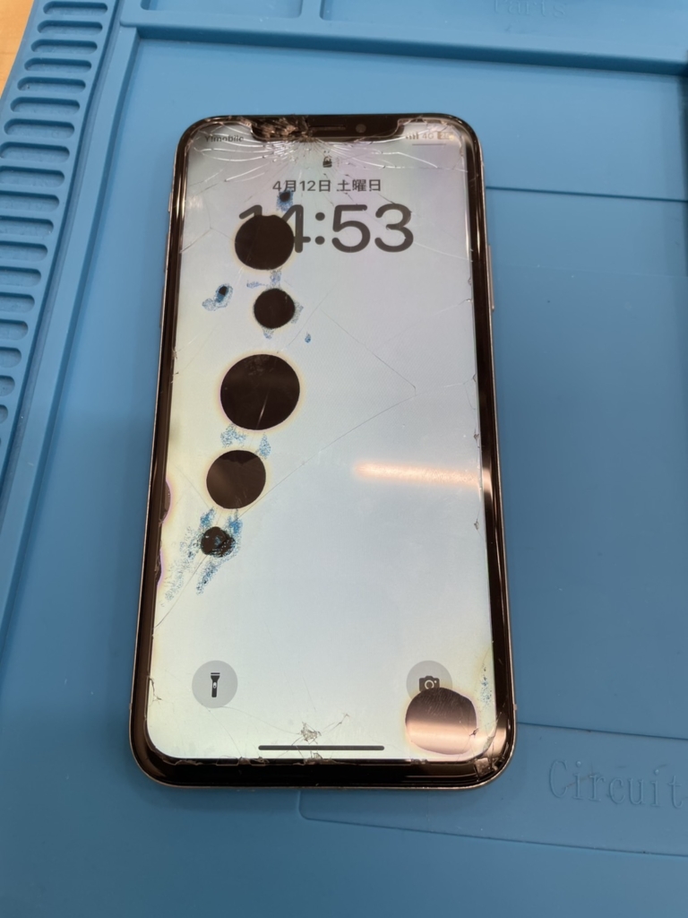 こんにちはイカツイ店員です。 頑張って更新しよう。 今回は滋賀県守山市のiPhoneXになります。 今回は画面修理の依頼で持ち込まれました。 画面上部にヒビがあり、落として割れたのかな?と思いつつ電源をつけてみると黒い斑点が… どうやら液晶が漏れてし... -